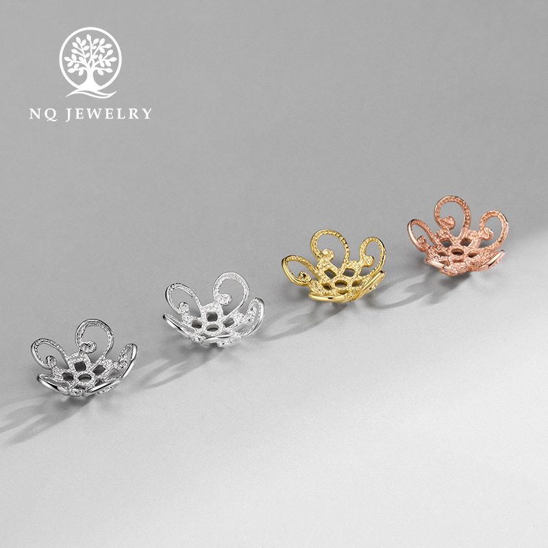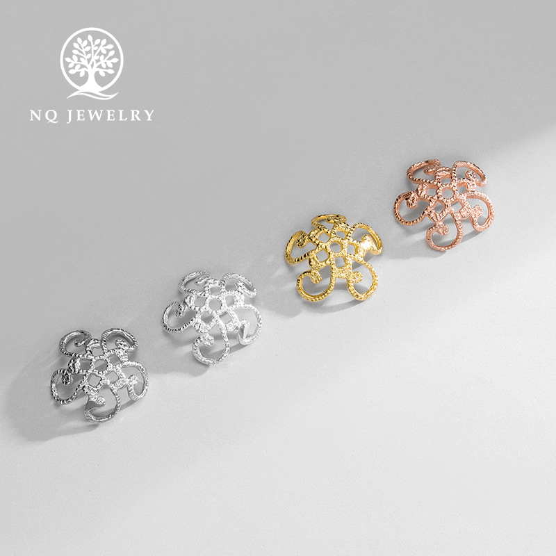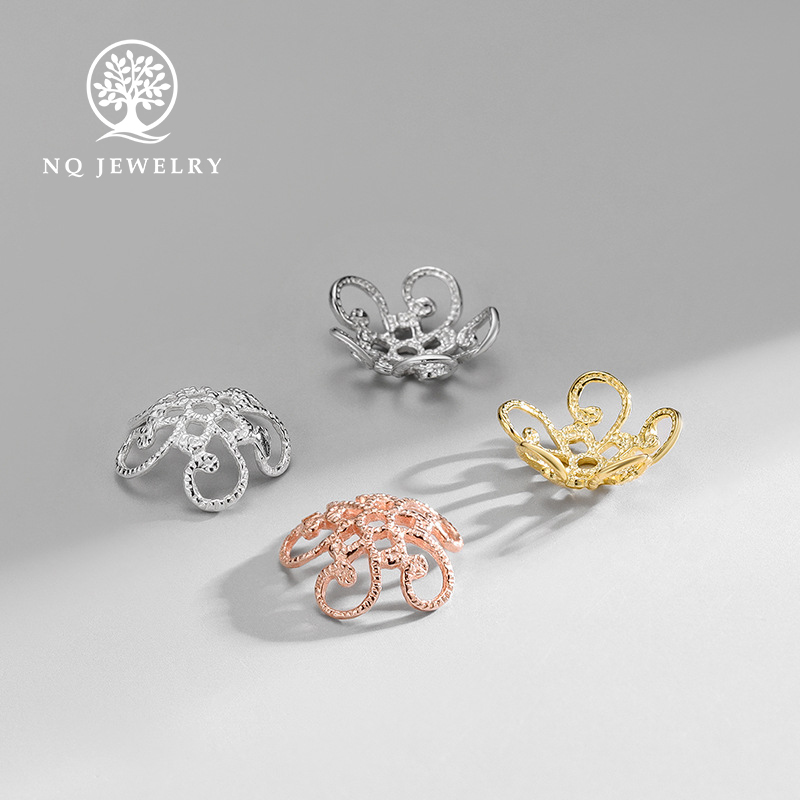 Charm bạc chụp hạt, bọc hạt họa tiết hoa