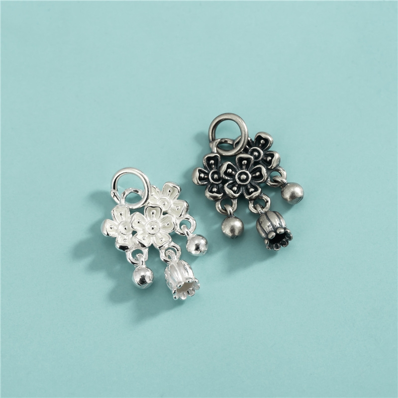 Charm bạc hình hoa nhỏ cùng hoa tulip treo